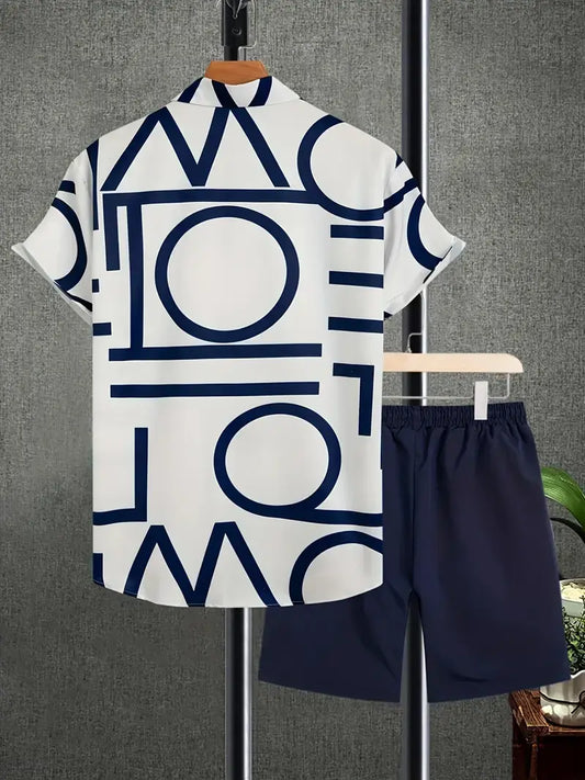 White Navy Blue Floral Design Mens Half Sleeves Cords Cotton Material