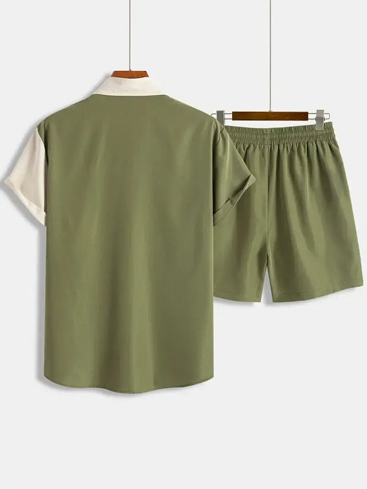 Cream and Green Mix Colored Men's Half Sleeves Cords Cotton Material