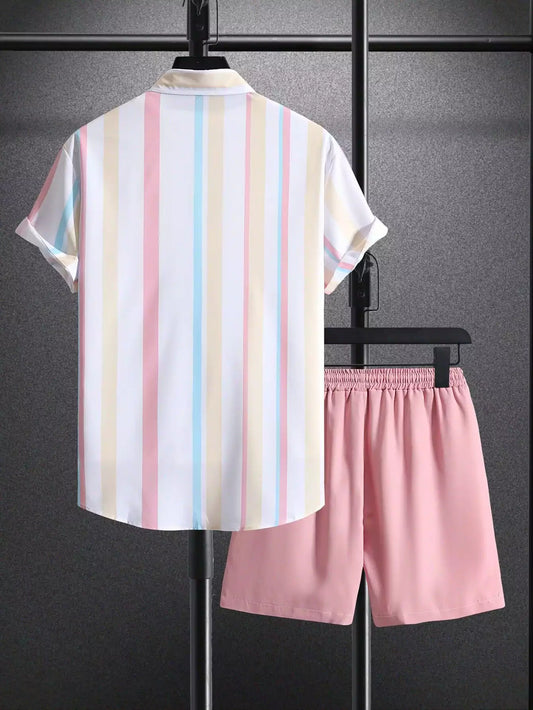 Peach Vertical Design Mens Half Sleeves Cords Cotton Material