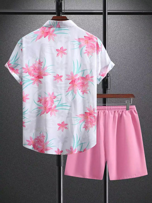 Pink Floral Design Mens Half Sleeves Cords Cotton Material