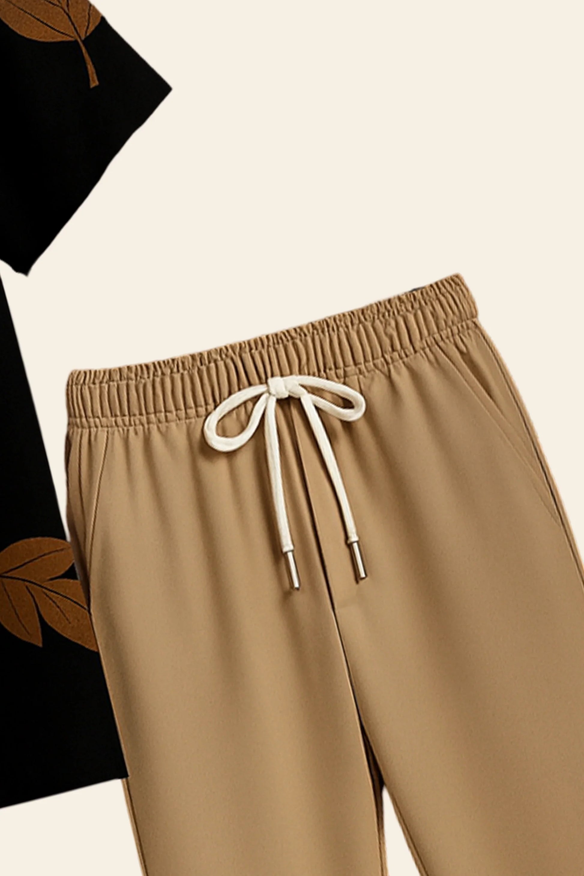 Cream Brown Line Design Mens Half Sleeves Cords Cotton Material - XPCRDH