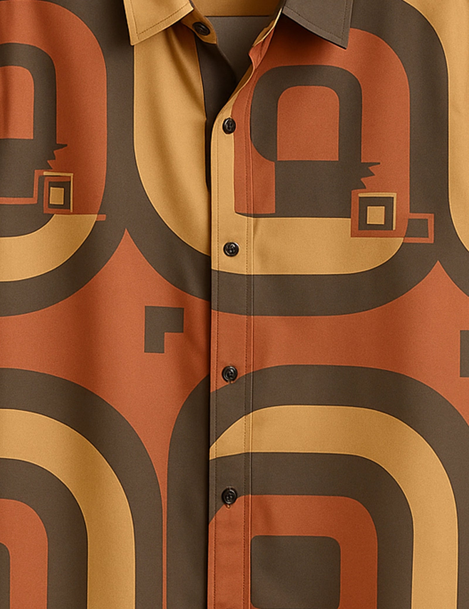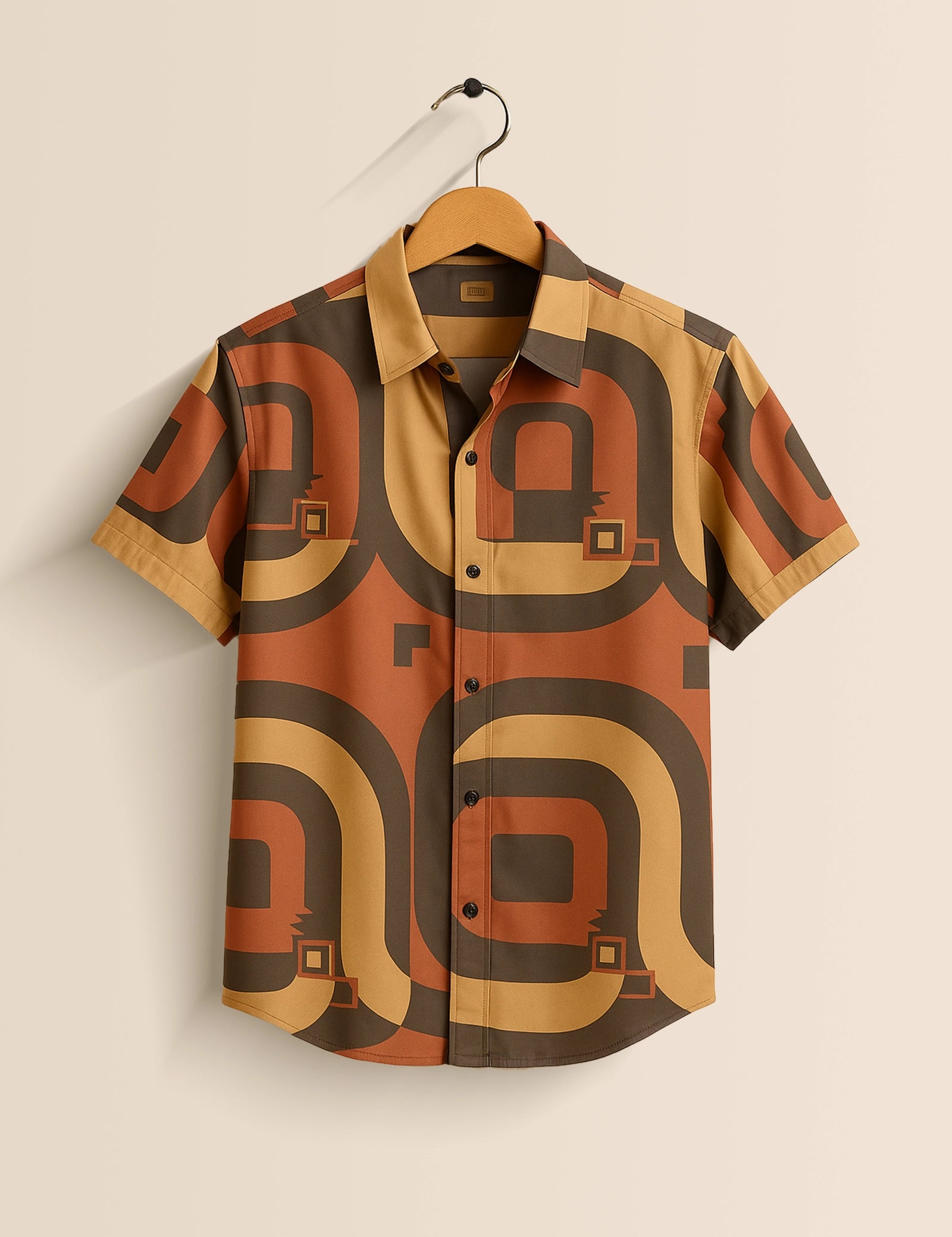 Brown Geometric Designer Men's Half Sleeves Printed Shirt Exclusive