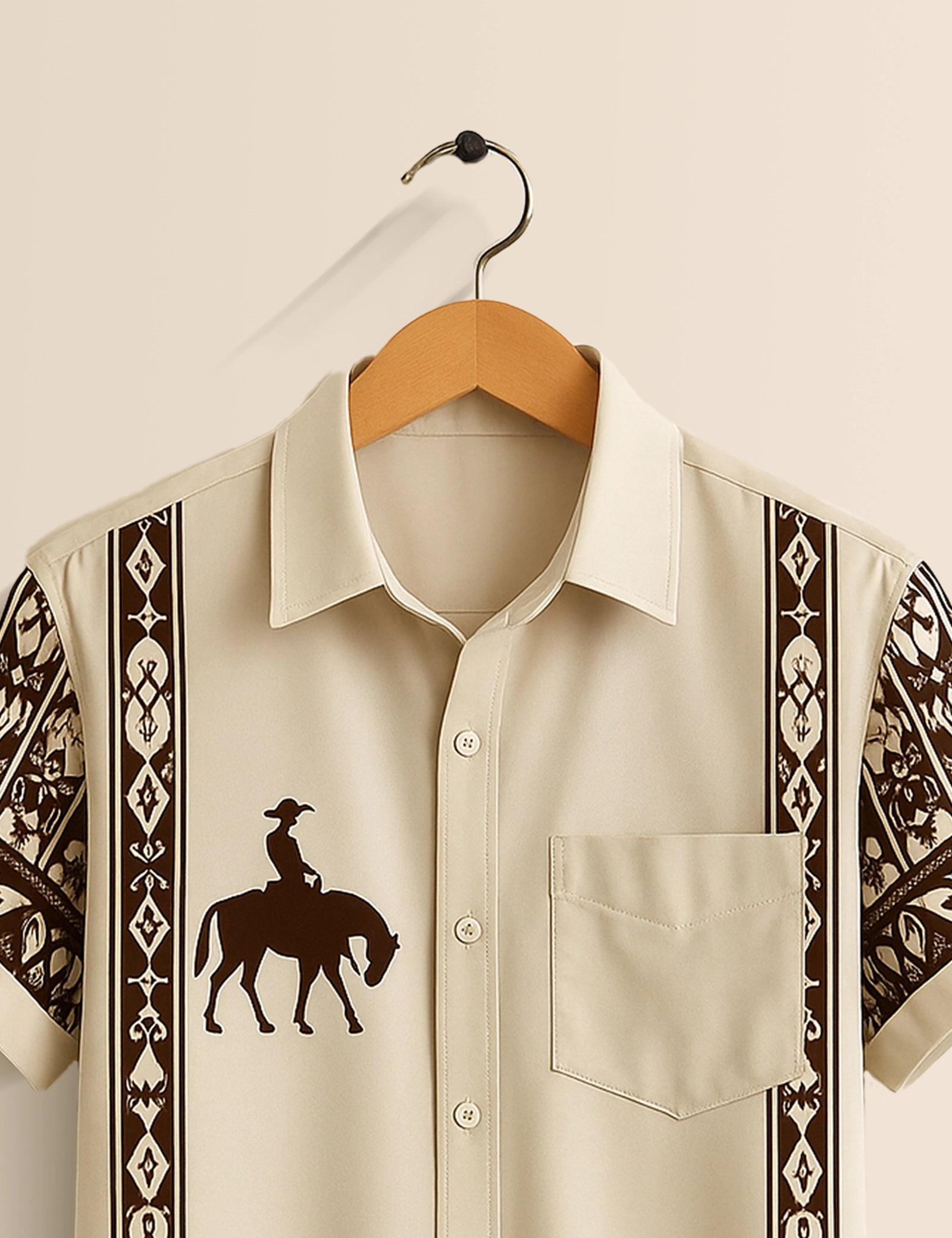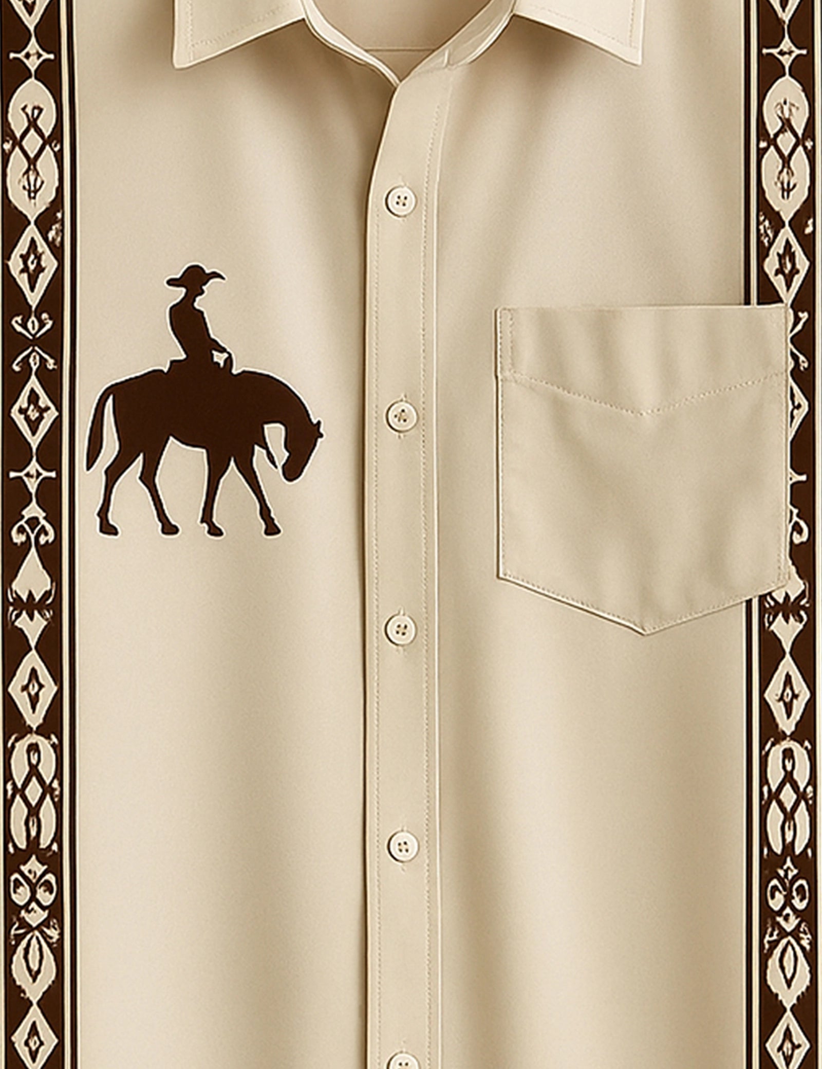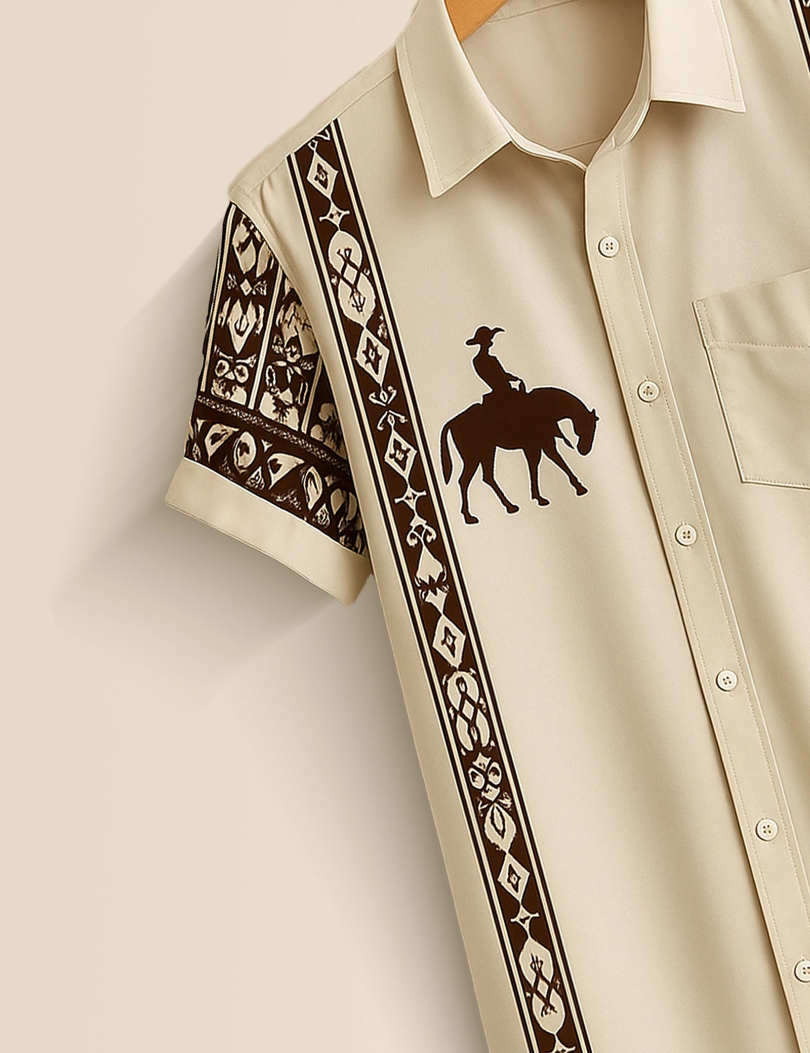 Cream Horse Designer Men's Half Sleeves Printed Shirt Exclusive