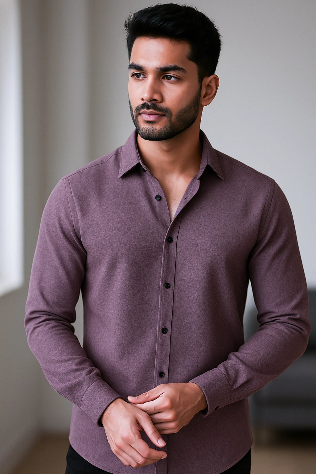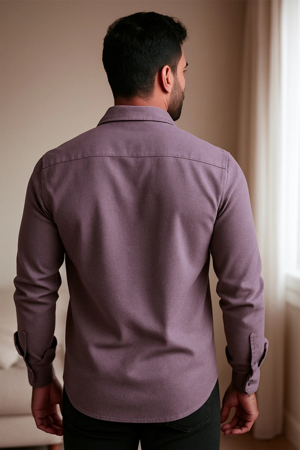 Men Spring And Summer Solid Color Loose Casual Long-Sleeved Shirt Purple Color